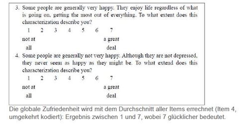 | Skala „Subjektives Glück" von Lyubomirsky und Lepper (2009) |