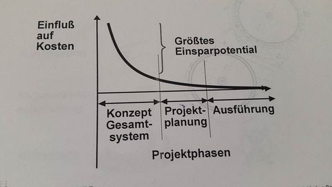 | Welche Projektphasen gibt es bei der Planung und Ausführung von Projekten? Welche Phase hat den größten Einsparpotential? | |
