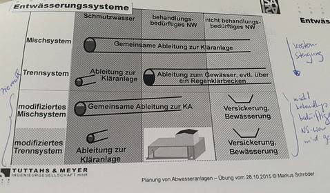 | Welche Abwasserarten gibt es? | - Behandlungsbedürftiges Niederschlagswasser (Straßen) - Nicht behandlungsbedürftiges Niederschlagswasser (Dächer) - Schmutzwasser (Haushalt) |