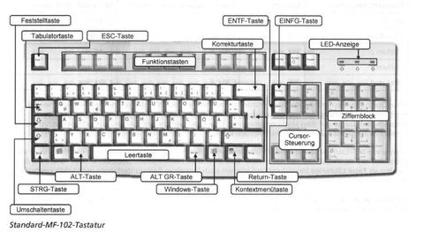 | Aus was besteht eine Tastatur? | - Alphanumerische Block - Cursor Steuerung & Positionierung -Ziffernblock - Funktionstasten |