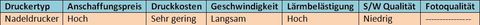 | Entscheidungskriterien eines Druckerkaufs: - Nadeldrucker - | |
