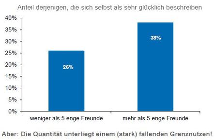 | BEDEUTUNG DES FREUNDESKREISES -“People need supportive, positive relationships and social belonging to sustain well-being“ (Diener & Seligman) -- Menschen mit intensiven Freundschaften sind grundsätzlich glücklicher als Personen ohne Freundeskreis |