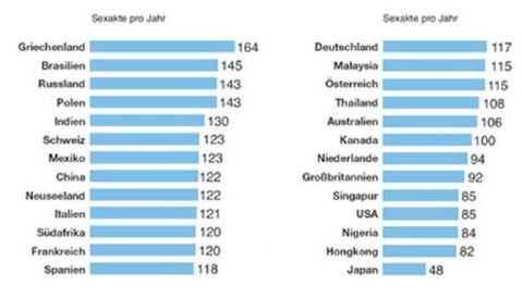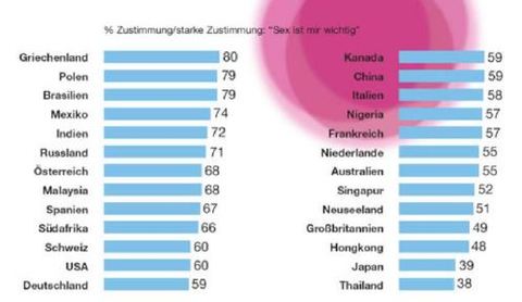 | Dauerhafte Zufriedenheit | Bedeutung von tiefer Zuneigung und Sex ist für eine beständige Lebenszufriedenheit nicht zu unterschätzen --„The more sex, the happier the person“ (Blanchflower und Oswald, 2003) --> nicht unabhängig mit wem! ein partner reicht um wohlbefinden zu maximieren |