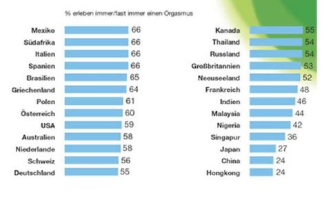 | Orgasmus; Mann vs Frau | 21% aller Frauen kommen immer zum Orgasmus -11% sagen noch nie einen gehabt zu haben -Männer: 72% jedes mal |