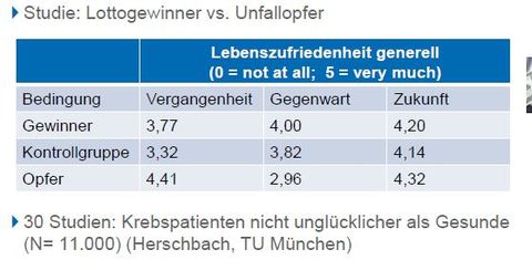 | Glückliche vergleichen weniger (Lyumbomirsky und Ross) | Glückliche: gefestigtes Selbstkonzept; Erhalt u Erweiterung der Langzeitzufriedenheit; weniger sensibel --> Verbesserung der eigenen Leistung -Unglückliche: unsichere Selbstwahrnehmung; schnell reizbar; hohe Reaktion auf Probleme --> Selbstzweifel |