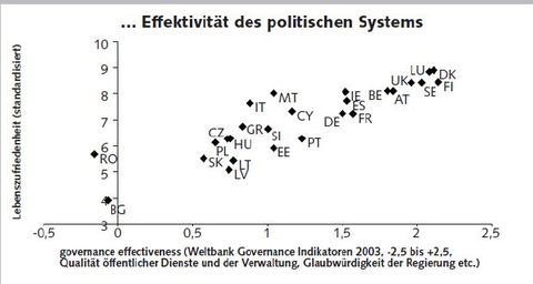 | Politische Partizipation | Die Anzahl und Ausprägung direkt-demokratischer Möglichkeiten eines Staatssystems haben einen besonders hohen Einfluss auf die Lebenszufriedenheit: -Aktive Entscheidungsfähigkeit der Bürger -Identifikation mit dem Entscheidungsergebnis -Transparenz |