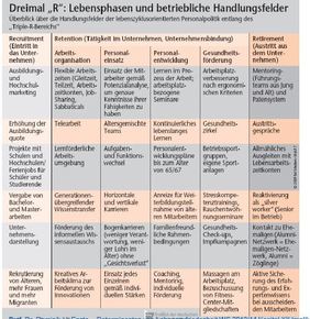 | Lebenszyklusorientierung als Mitarbeiterbindung | Mitarbeiterbindung gewinnt angesichts der demografischen Entwicklung immer mehr an Bedeutung und wird zu einem wichtigen Gestaltungsfeld in den Unternehmen. Alle Aktivitäten - von der Karriereplanung über die Arbeitsorganisation bis zum Gesundheitsmanagement - dienen auch der Mitarbeiterbindung. |