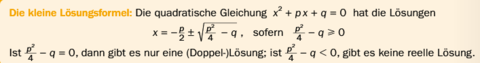 Kleine Lösungsformel für quadratische Gleichungen | |