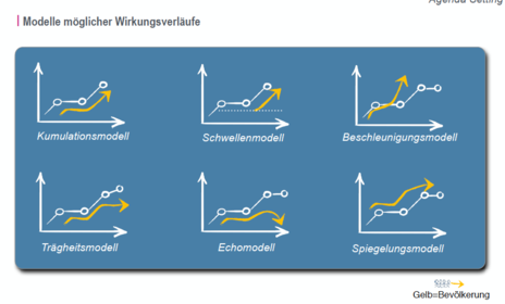 | Beschleunigungsmodell | - Medien machen auf ein Thema aufmerksam - Berichterstattung geht zurück - Publikumsagenda bleibt aber noch an dem Thema hängen und hält langfristig an |