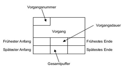 | Netzplan (Def.) | Der Netzplan ist die grafische Darstellung von Ablaufstrukturen, die die logische und zeitliche Aufeinanderfolge von Vorgängen veranschaulichen |