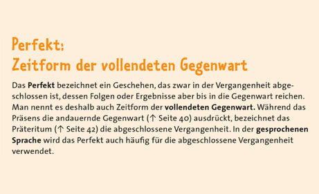 | Perfekt: Zeitform der vollendeten Gegenwart | |