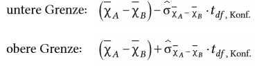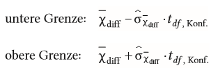 Konfidenzintervall für Mittelwertsunterschiede bei abhängigen Stichproben | Andere Formel, gleiche Interpretation wie bei unabhängigen Stichproben |