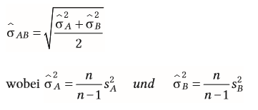 Gesamtstreuung (Standardfehler für Mittelwertsunterschied bei unabhängigen Messungen) | = Fehlerstreuung + systematische Streuung |