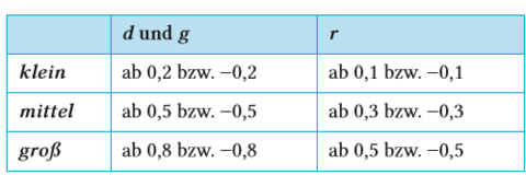Effektgrößen aus Rohdaten | - bei unabhängigen Messungen - bei abhängigen Messungen - für Zusammenhänge (Korrelationskoeffizient) |