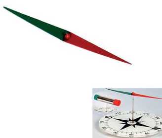 Wie kannst du bei einem Magneten den Pol bestimmen (Hilfsmittel Magnetnadel) ? | Du näherst den Magneten z. B. dem Nordpol der Magnetnadel! Bleibt die Magnetnadel in ihrer Position, wird diese angezogen: der Magnetpol muss daher ein Südpol sein. Dreht sich die Magnetnadel, ist es genau andersrum. |