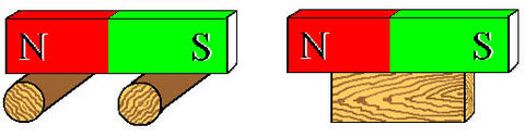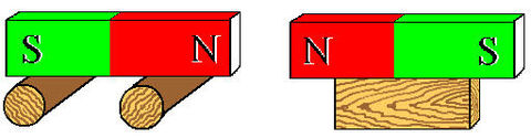 Jeder Magnet besitzt 2 Pole . Wie heißen diese ? | Nordpol (rot) Südpol (grün) |