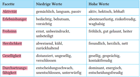 2.1 Extraversion und interpersonelle Stile | Extraversion - Introversion lässt sich in engere Unterfaktoren (Facetten) gliedern. Temperamentsmerkmale = Aktivität, Erlebnishunger und Frohsinn und Herzlichkeit interpersonelle Stile: Herzlichket, Geselligkeit, Durchsetzungsfähigkeit Introversion, nicht Gegenteil von Extraversion; fehlt Bedürfnis nach Geselligkeit |