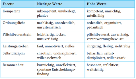 2.3 Kontrolliertheit | - Neuroticismus-Facette Impusivität = Fähigkeit impulsive Verhaltenstendenzen zu blockieren <- daruaf bezieht sich Dimension Überkontrolle - Unterkontrolle - Auch Fähigkeit generell planvoll/organisiert zu handeln --> schließt dabei mehrere Facette der B5 Gewissenhaftigkeit mit ein -Hohe Werte sozial erwünscht - Kontrolliertheit als Temperamentdimension beinhaltet: Nicht-Impulsivität, Besonnenheit, Selbstdisziplin > Vorraussetzung für hohe Gewissenhaftigkeit und kompetentes Handeln -Gewissenhaftigkeit sagt Leistungen und Berufserfolg am besten voraus. -Mit Kontrolliertheit verwandt = Integrität, sagt besser das Leistungspotential voraus. - Erfassung per Integritätsfragebög. |