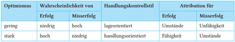 ... | - bei geringem Handlungsoptimusmus ist subjektive Wahrscheinlichkeit für Erolg gering, für Misserfolg hoch, bei starkem Optimismus direkt umgekehrt. Wichtig: subjektiv - starker Optimismus kann zu Überschätzung, starker Pessimismus zu Unterschätzung der Erfolgswahrscheinlichkeit einhergehen - Leistungsbereich: Optimismus - > Erfolgsmotiv: Hoffnung auf Erfolg Pesimismus: Furch vor Misserfolg - Erfolgsmotivierte erhöhen Anspruchsniveau nach Erfolg stärker, Misserfolgsmotivierte senken Anspruchsniveau stärker nach Misserfolg - subjektiver Glaube förder objektiven Erfolg (selffulfilling prophecy) Selbstwirksamkeitserwartung: Erwartung zu bestimmten Verhalten fähig zu sein, gemessen durch Selbstwirksamkeitsskala -> eigenes Handeln und nicht das Ergebnis im Mittelpunk Kontrollüberzeugung: - Erwartung, Handlungsfolgen selbst unter Kontrolle zu haben (internalte Kontrolle) bzw. Opfer der Situation zu sein (externale Kontrolle) -entw. eigene Person oder äußere Bedingung Ergebinerwartungen, Selbstwirksamkeitserwartungen und Kontrollüberzeugugnen, verwandt, nicht identisch |