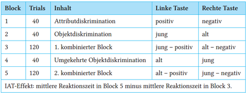 ... | - Einstellungsobjekte können Wörter oder Bilder sein - pro Block viele Trials für interne Konsistenz (Aggregationsprinzip) - umgekehrte Assoziation für Ausschluss der individuellen Schnelligkeit nötig - IATs erfassen impl. Einstellungen mit ausreichender Konsistenz, Retest- und Paralleltestreliabilität unbefridigend |