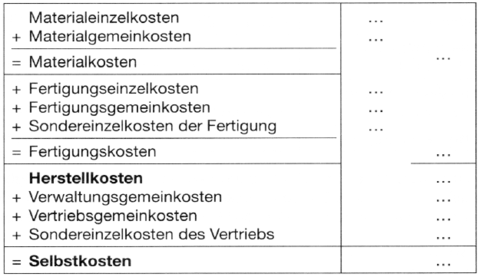 | Zuschlagskalkulation Schema Selbstkosten | |