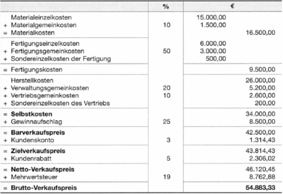 | Zuschlagskalkulation Schema bis Brutto Verkaufspreis | |