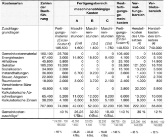 | Differenzierte Zuschlagskalkulation | Erhöhung der Kalkulationsgenauigkeit, wenn Zuschläge nach Kostenstellen differenziert werden können. |