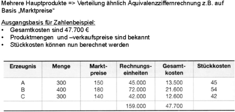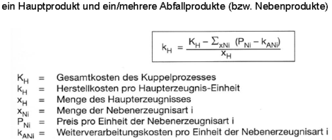 | Kuppelkalkulation | Anwendung bei zwangsläufig gleichzeitiger Erstellung mehrerer Erzeugnisse (Haupt-, Neben-, Abfallerzeugnisse) |