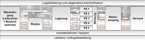 | Grundsätzliche, wertschöpfende Kernprozesse eines Logistikzentrums als Beispiel | Wareneingang - Lagerung - Picken - Warenausgang |