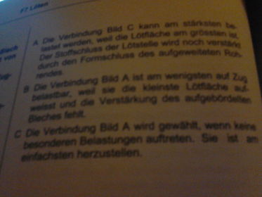 | Um gute resultate zu erzielen muss das lot auf den zu lötenden werkstoff abgestimmt werden Welche lote verwendet man für diese Werkstoffe a) Baustahl b) CrNi- Stahl c) grauguss d) Zinkblech | a) messinglot, neusilberlot, silberlot b) silberlot c) neusilberlot d) zinnbleilot, zinnlot |