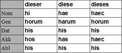 | hic haec hoc Singular (Demonstrativpronomen) |