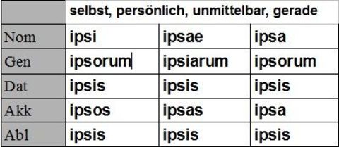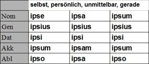 | ipse ipsa ipsum Singular (Demonstrativpronomen) |