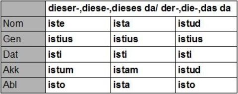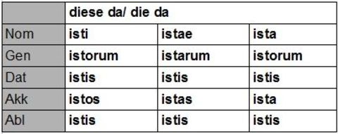 | iste ista istud Singular (Demonstrativpronomen) |