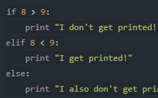 | Schreibe ein Beispiel für ein "else statement". | if 8 > 9: print "I don't print!" else: print "I get printed!" |