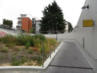 | Welche Massnahme ist ersichtlich? Max. Steigung? Zweck? Wem bringt es was? | Rampe Max. 6% für selbständigen Fahrer*innen, in Ausnahmefällen mit Begleitung 12% Höhenüberwindung mit Rollstuhl für Gehbehinderte/Rollstuhlfahrer*innen |