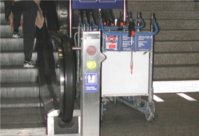 | Welche Massnahmen sind zu sehen? Zweck? Wem bringt es was? | 1. Wärmelampe an Rolltreppe 2. Taktile Markierung (im Hintergrund) 1. Zeigt Laufrichtung der Rolltreppe 2. Zeigt Treppenbeginn an 1. & 2.: Sehbehinderte |