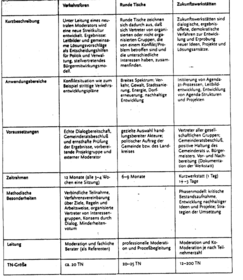 | Welche 3 Komponenten bilden die Voraussetzung für ergebnisorientierende Gespräche? | - ein Leitbild oder eine grundsätzliche Zielsetzung -eine politische Kultur der Konsensfindung -ein planerischer Weg, um gefundene Kompromisse umzusetzen |