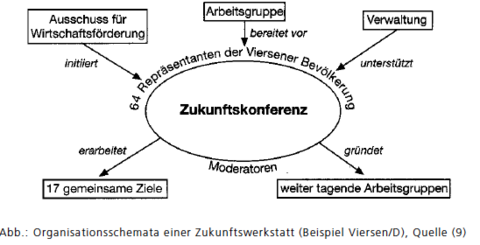 | Mitwirkung: Szenariendiskussion Einsatzmöglichkeiten? | - eignet sich für Probleme oder Fragestellungen, die als dringend lösungsbedürftig und im Prinzip als lösbar angesehen werden. -haben vielfältige Einsatzbereiche; Workshops, Verkehrsforen, Zukunftswerkstätten oder –konferenzen |
