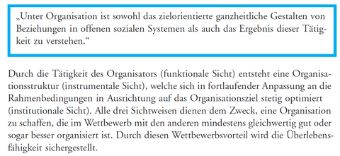 | Organisationstheorien Systemtheoretischer Ansatz | Versteht die Organisation als lebendiges Gebilde mit komplexen Wechselwirkungsbeziehungen im Inneren & Äußeren |