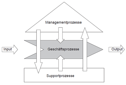 | Prozessarten | Geschäftsprozesse • Bilden den Kern des Unternehmens / bilden das Produkt ab Managementprozesse • Müssen die Geschäftsprozesse organisatorisch und strategisch so ausrichten, dass Wettbewerbsvorteil gegenüber der Konkurrenz besteht bzw. genügend Absatz/ Umsatz generiert wird. • Leistungserstellung wird operativ in den Geschäftsprozessen und Supportprozessen geplant, überwacht und gegebenenfalls korrigiert. Supportprozesse • Ohne direkte Wertschöpfung für den Kunden (z.B. Personalwesen, Abrechnung, usw.) Sicherstellung der Betriebsbereitschaft auf Geschäftsprozessebene sowie auf der Eben der Managementprozesse. |