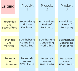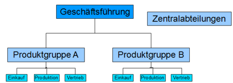 | Definition Divisionale Organisation | Organisation des Unternehmens, der Abteilungen und Bereiche orientiert sich nach den Produkten bzw. Produktgruppen. Um diese Gruppen werden die Bereiche aufgebaut. |