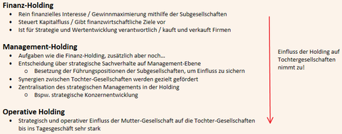 | Definition Holding | rechtlich eigenständige Unternehmen unter der Führung einer Muttergesellschaft |