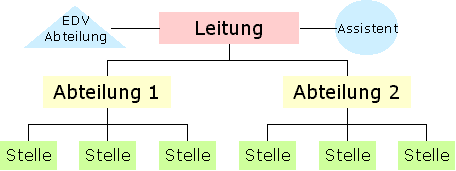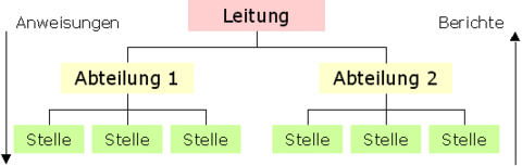 | Führungsspanne | Gibt die Anzahl der zu führenden Abteilungen an. Je größer die Führungsspanne, desto - kleiner die Hiarchien - desto mehr Arbeit für die übergeordnete Instanz - desto kürzer die Kommunikationswege => Es muss eine für die Unternehmung optimale Führungsspanne gewählt werden, um die Vorteile voll ausschöpfen und die Nachteile minimieren zu können! |