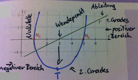 | Woran erkennt man mehrfache Nullstellen grafisch? | In dem die Tangente waagrecht ist. |