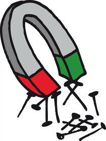 Nenne Beispiele für Gegenstände, die ein Magnet anzieht: | Nagel Büroklammer Schraube Nähnadel Reißnagel Münze |