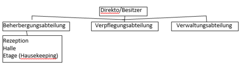 | .) Erklären Sie anhand des "europäischen Systems" das Organisationsmodell eines Hotels "Abteilungen, Verantwortungsbereiche) | |