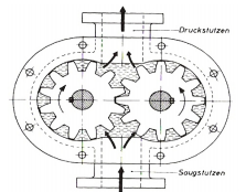 Rotierende Verdrängerpumpen hier: Zahnradpumpe