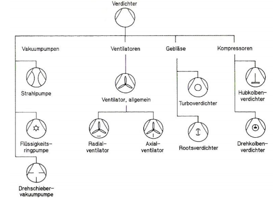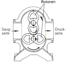 Rootsgebläse/ Drehkolbenverdichter Vgl. Kreiskolbenbumpe. Wirtschaftliche Förderung kleiner und mittlerer Volumenstöme bis zu bei Drücken bis 10 bar.